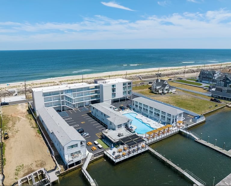 Nestled between the sparkling ocean and the tranquil Navesink River, our beach hotel and resort offers an idyllic escape for guests seeking luxury and relaxation. With modern, elegantly appointed rooms that provide stunning ocean views at the front and serene river vistas at the back, you’ll experience the best of both worlds. The expansive in-ground pool beckons for leisurely afternoons, while the tiki bar restaurant, perfectly situated by the riverbank, serves up delicious refreshments with a breathtaking backdrop. For those arriving by water, our convenient dock allows easy access to the restaurant and hotel, making this the perfect destination for a summer getaway. Enjoy the sound of waves lapping against the shore as you unwind in this serene coastal paradise.